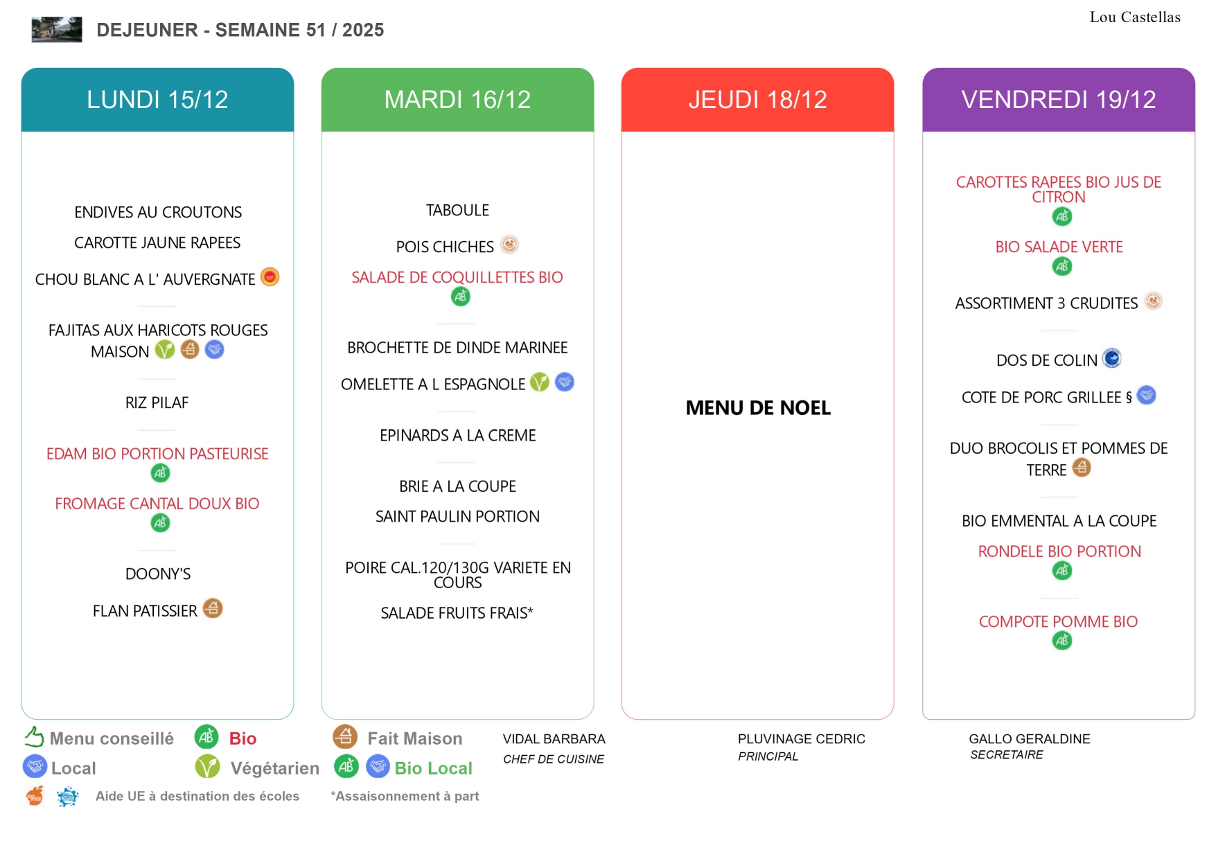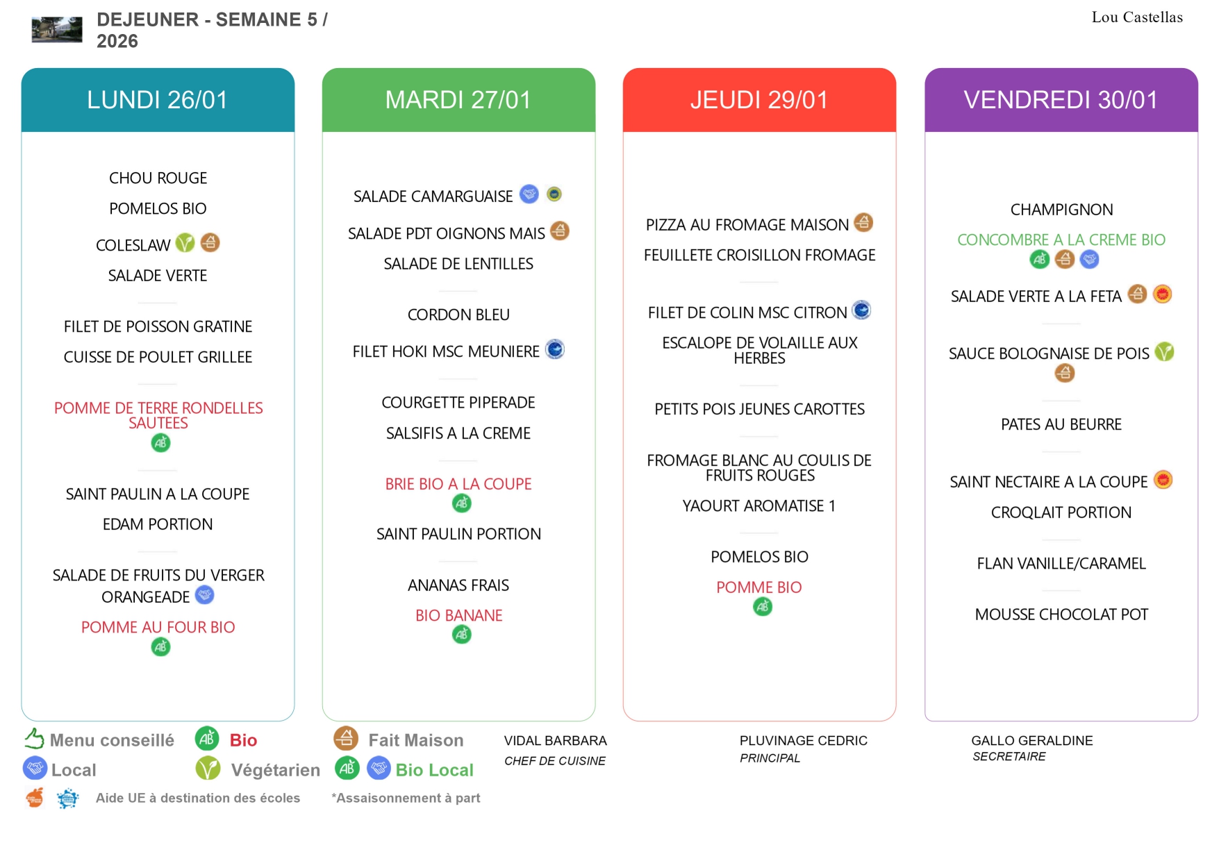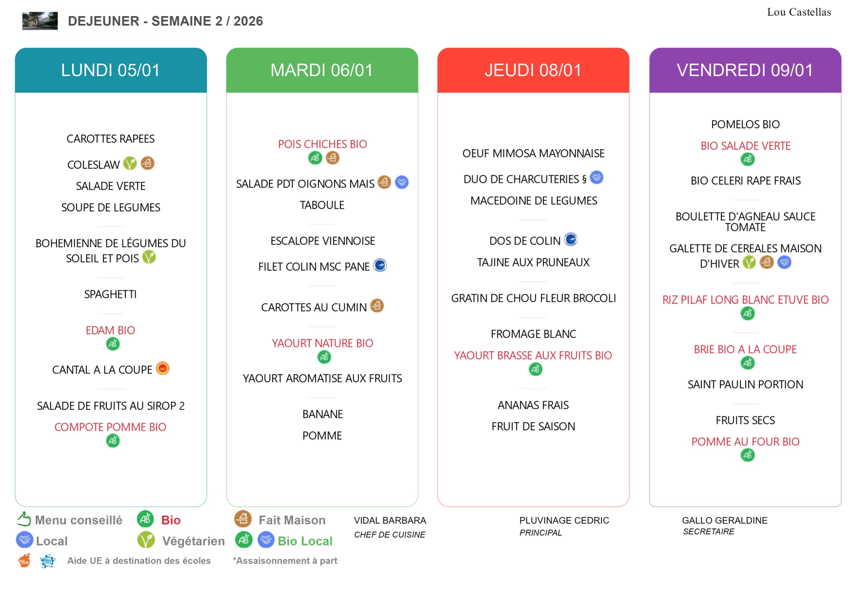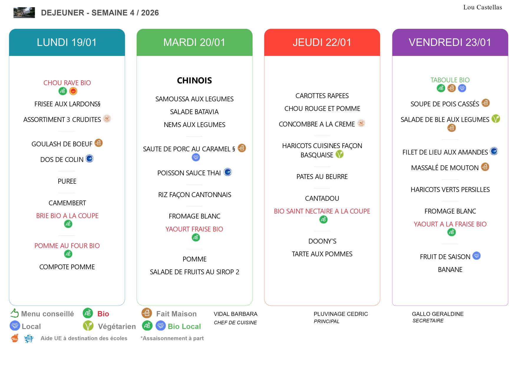 Menus de la semaine